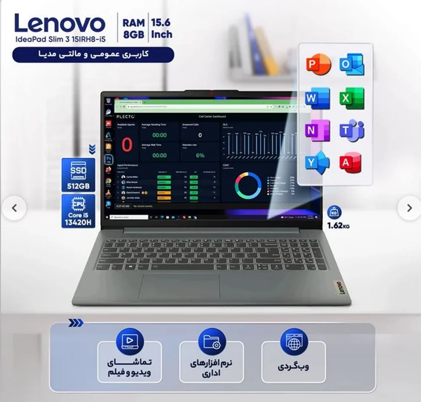 با لپتاپ 15.6 اینچی لنوو مدل IdeaPad Slim 3 15IRH8، تجربهای بینظیر از سرعت و کارایی را تجربه کنید. پردازنده قدرتمند i5 13420H، حافظه 8GB و فضای ذخیرهسازی سریع 512GB SSD، این دستگاه را به همراهی ایدهآل برای کار و تفریح مبدل میکند. این فرصت طلایی برای ارتقاء عملکرد روزانه خود را از دست ندهید!